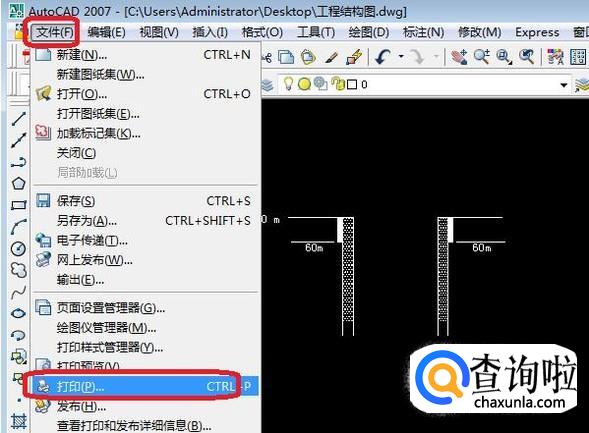 点击标题栏的“文件”,在下拉菜单中选择“打印”,弹出打印选项框。
