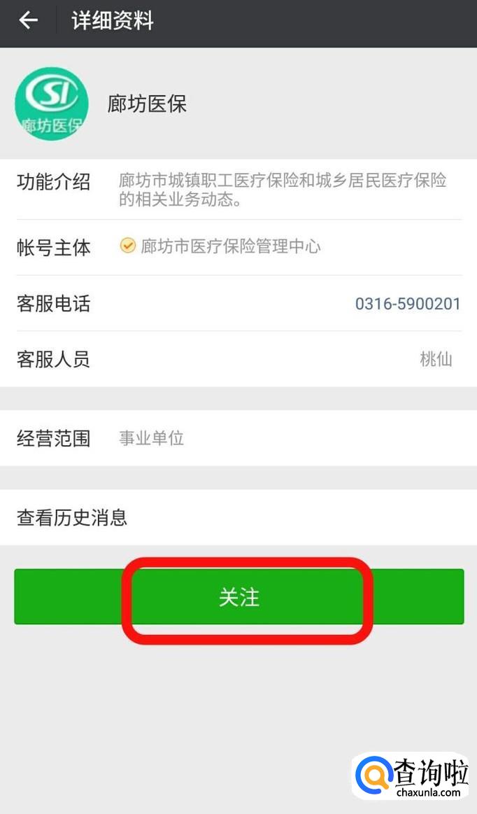 微信查询:关注“廊坊医保”微信公众号。