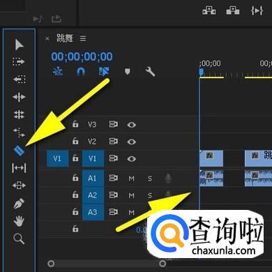 在序列面板这里。我们可以自由对视频进行剪辑;序列面板这里分为两部分,左边这部分是剪辑视频和音频的工具;右边是放置视频与音频的轨道。