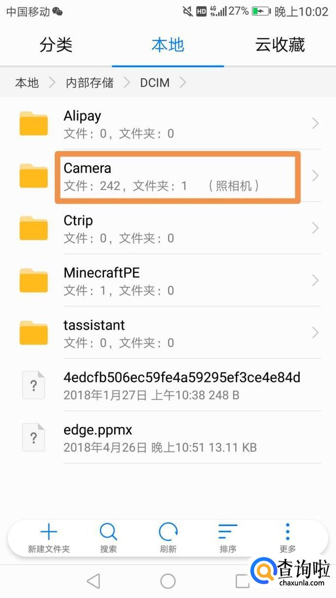 打开DCIM后,找到里面的Camera,将其打开,如下图。