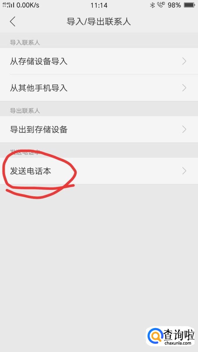 点击“蓝牙”,这时即可把电话本发送到已建立蓝牙连接的手机上了。