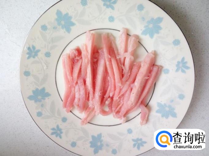 猪肉用水冲洗一下,控干水分,切成丝,备用。