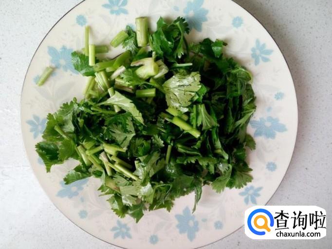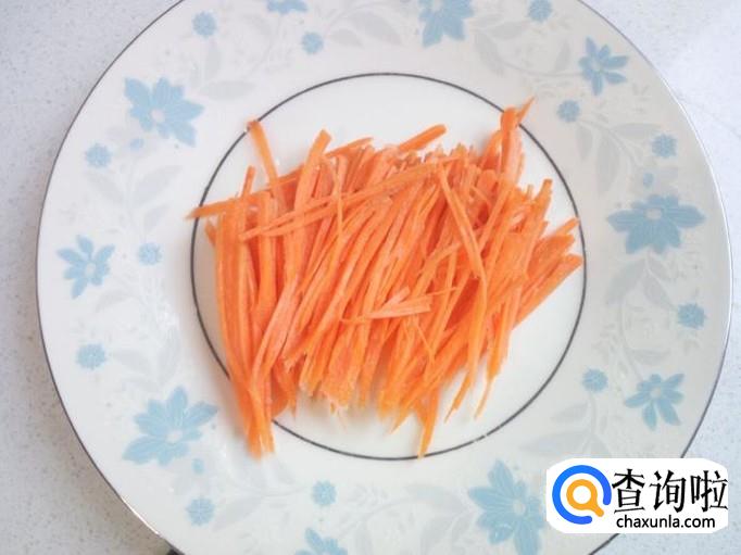 香菜用水清洗干净,控干水分,切成末。胡萝卜去皮,清洗干净,切成细丝,备用。
