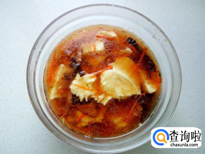 内酯豆腐 350克 (一盒,可供2~3人食用),木耳 适量,猪瘦肉 50克 ,香菜 5棵 ,