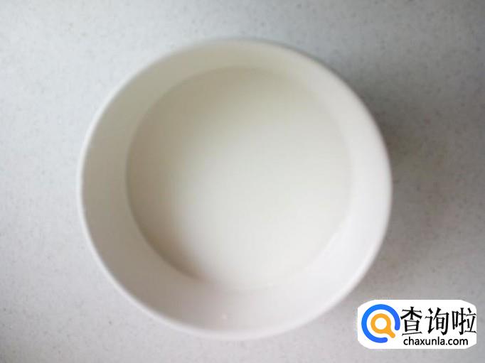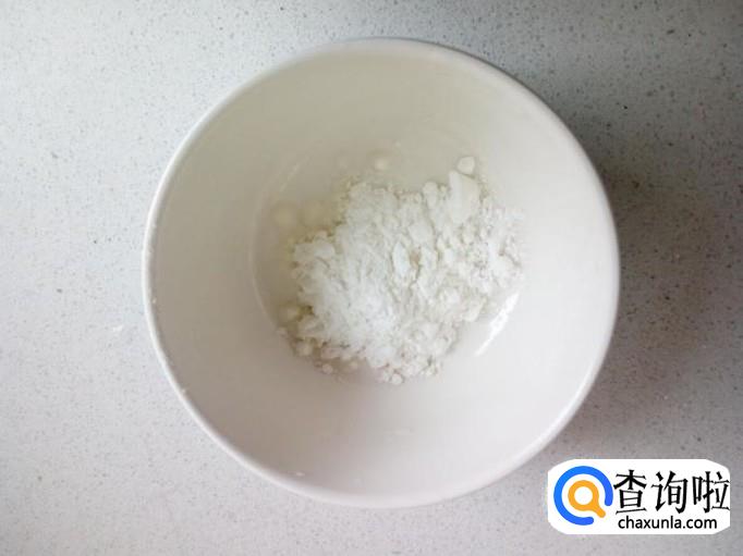 碗里放入两匙儿淀粉,兑水,勾兑成芡汁,备用。