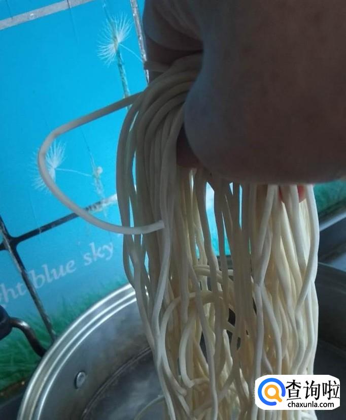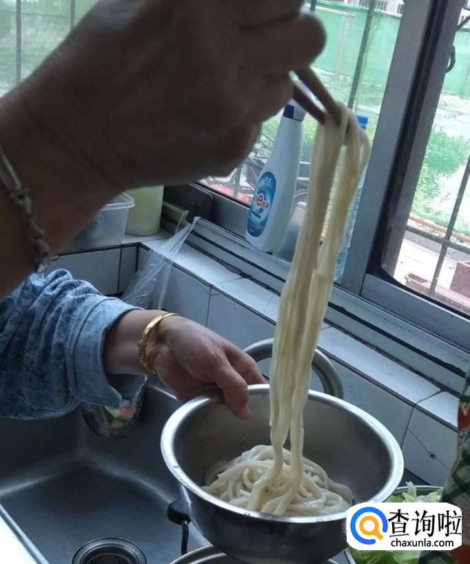 将煮熟的挂面捞出,倒入事先准备好的,凉水中过水。