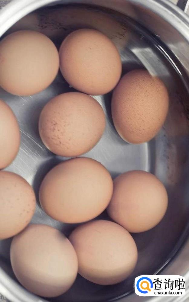 将鸡蛋放入凉水中,开小火温煮,煮15分钟。