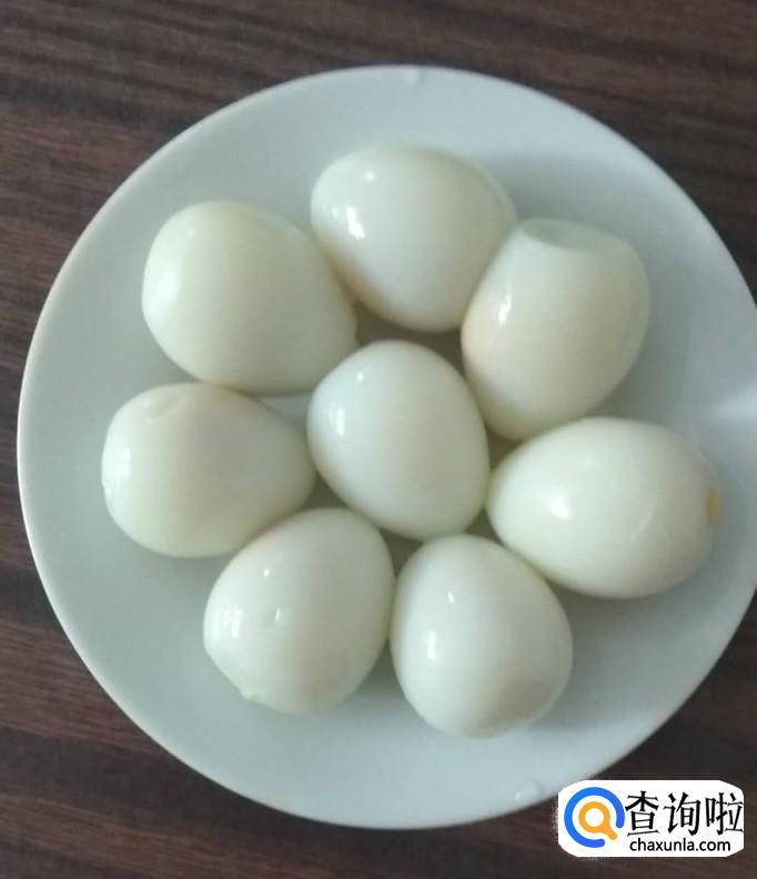 时间到了以后,将鸡蛋取出,不要放入冷水中,自然量凉,剥皮,备用。