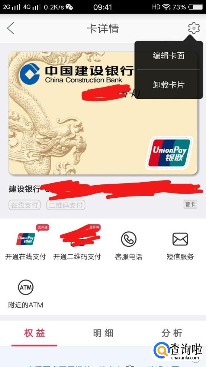 点击”查看卡详情“,在页面的右上角有一个设置的标志,点击一下,会出现一个列表,里面会出现“卸载卡片”。