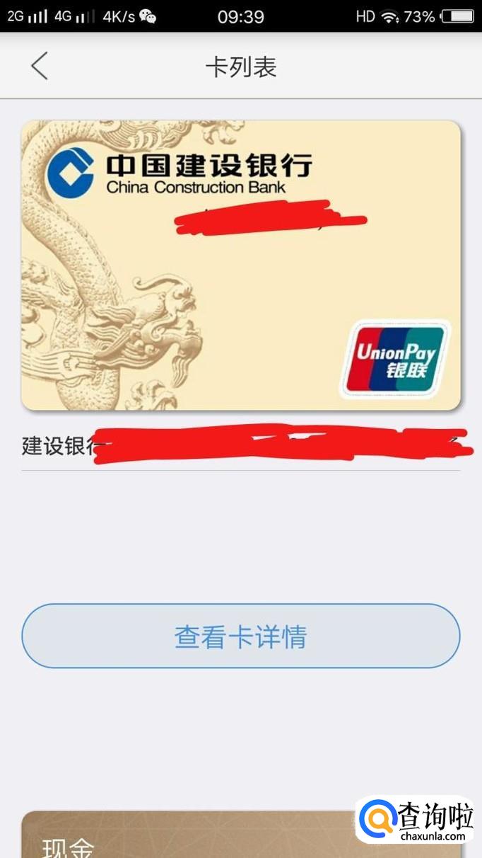 在我的卡包位置点开卡列表,就会看到你绑定的银行卡,然后点击一下银行卡,下面会出现“查看卡详情”几个字。