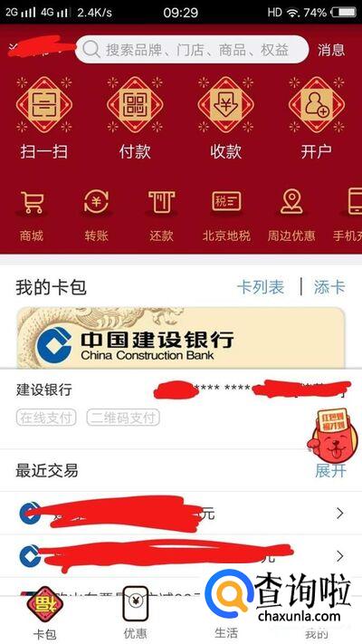 打开银联钱包APP,输入正确的手势密码成功登录银联钱包,进入银联钱包首页。