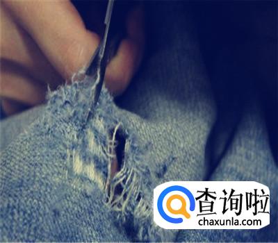 在将裤子洗好后,可放入烘干机适当的进行烘烤,然后将切口稍微加工一下,使它们看起来更加自然,操作方法也比较简单,只需要将镊子放在裂口的边缘处,之后把蓝色和白色的经纬线挑开,让它们看起来疏密得当即可。