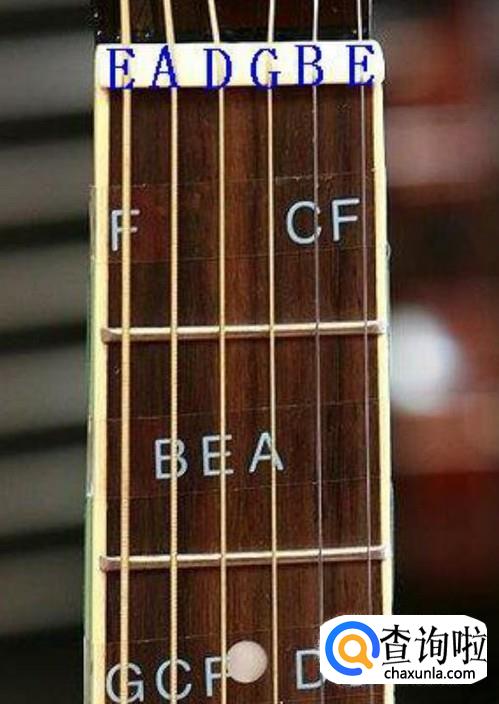 先认识吉他上的弦名,123456对应的就是CDEFGAB,先有这个初步的认识。