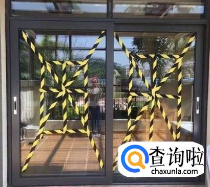 台风来了在窗户上贴胶带是为了抗台风,以免台风将窗户的玻璃刮坏,伤害路人。