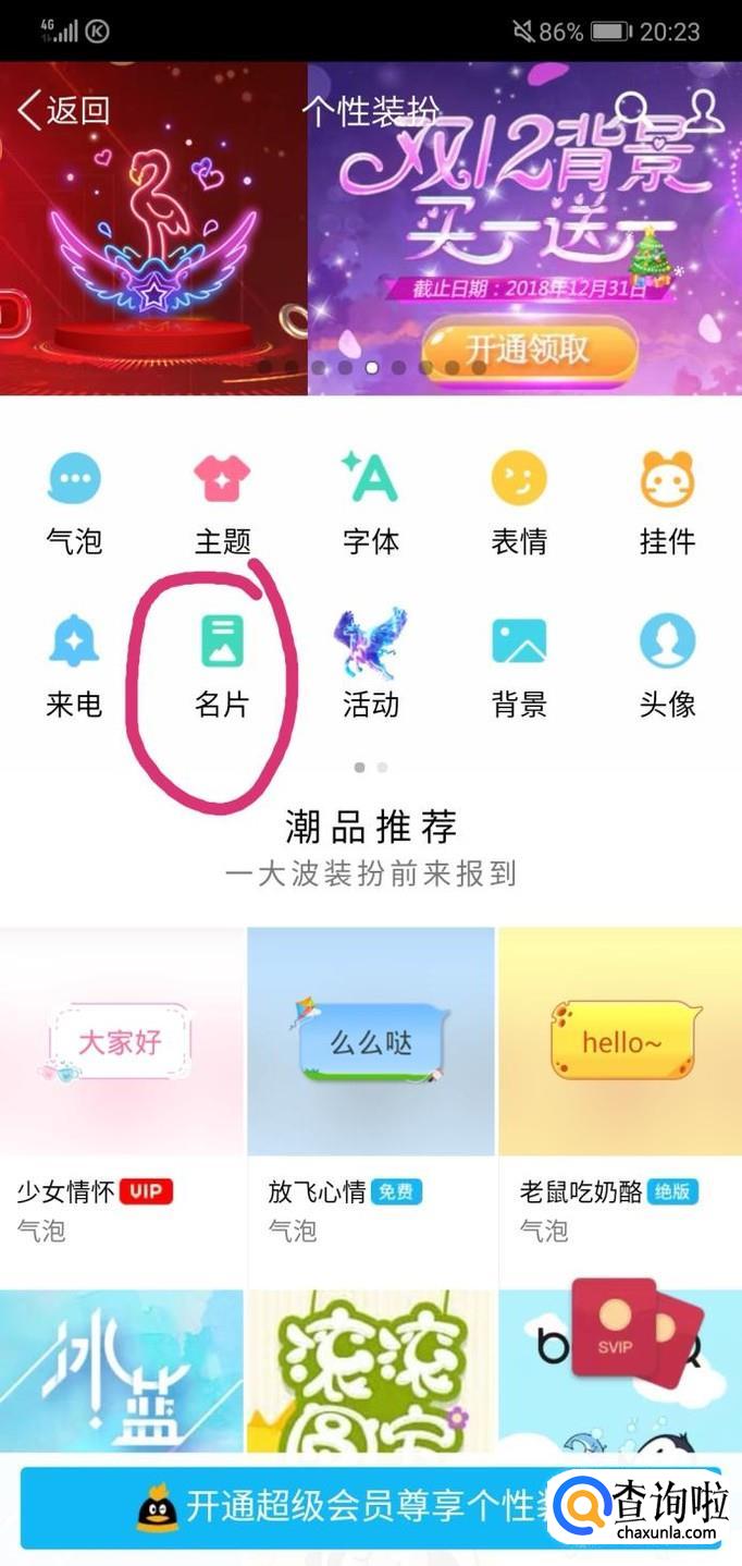 最后,在你所在的界面找到“名片”这个功能,点击它,然后你就进入了QQ名片的设计页面,接下来就是选择你喜欢的名片啦。