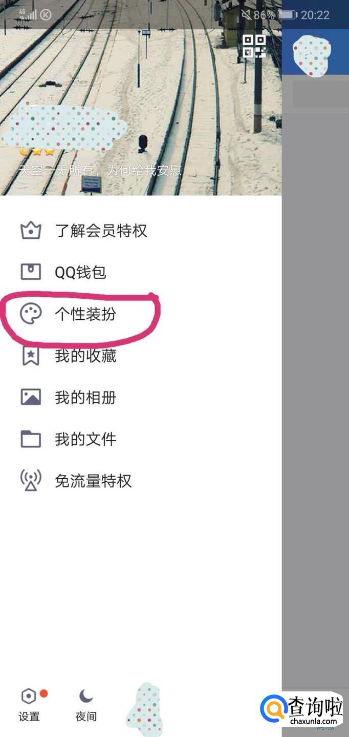 然后,点击进入手机QQ后,你需要点击一下你的QQ头像,或者你也可以向右滑一下你的手机屏幕,这时会出现一个界面。