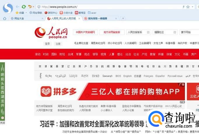 如果您使用的是搜狗浏览器,那么就需要打开您需要设置成兼容模式的网页,比如人民网。