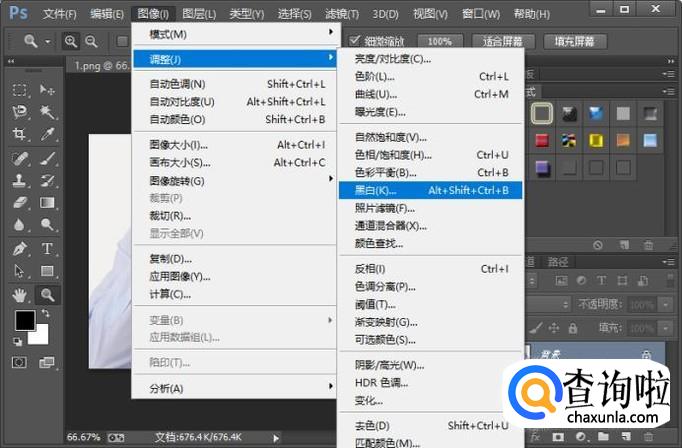 第三种方法就是执行图像-调整-黑白命令,这样也是可以把彩色图片调为黑白的。