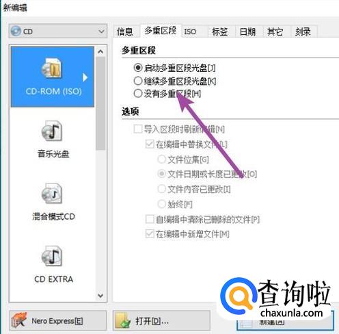 选择 多重区段 的第一个类型,启动多重区段光盘