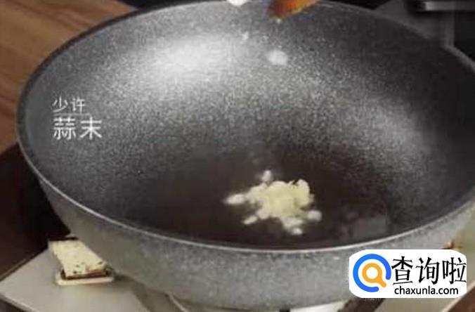在锅里倒上适量的油,加上一点蒜末进行爆香
