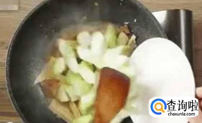 之后在上面将丝瓜块倒进去,小火煮上五分钟