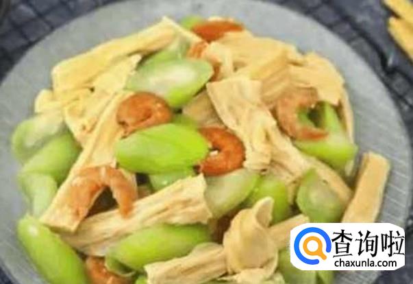 放上虾仁干进行翻炒,之后加上腐竹,放上点水进行煮,放上调味料再小火焖着先