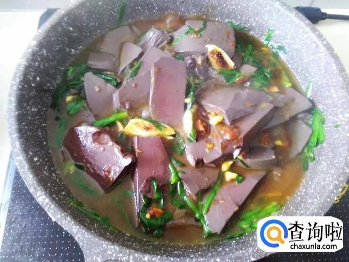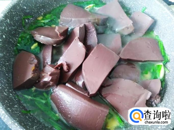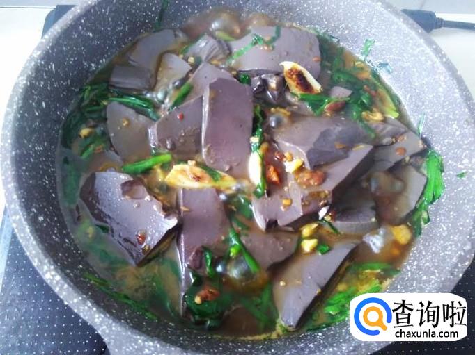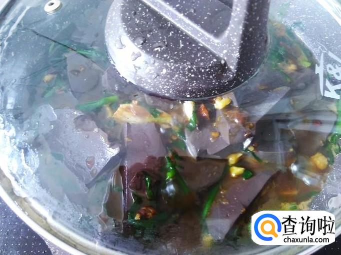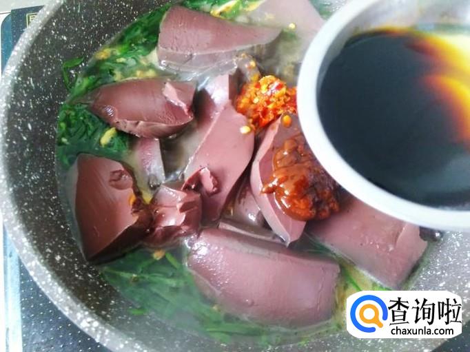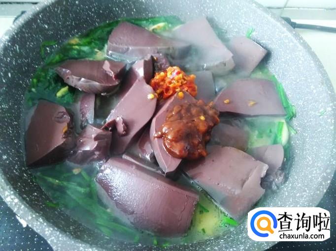 放牛血进去,加1勺剁椒、1勺豆酱。