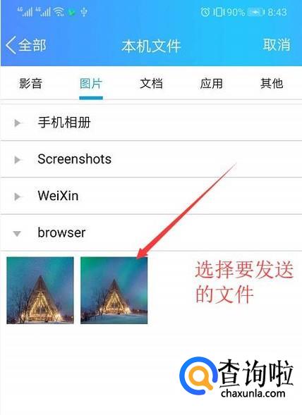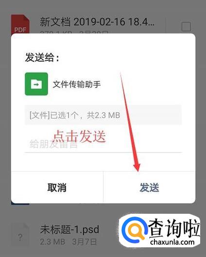 接着选择一个要传输的文件,如下图所示