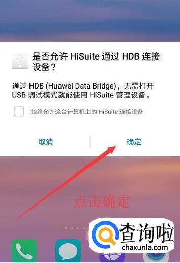 然后我们点击确定,同意USB调试模式,如下图所示,不同的手机提示的不一样