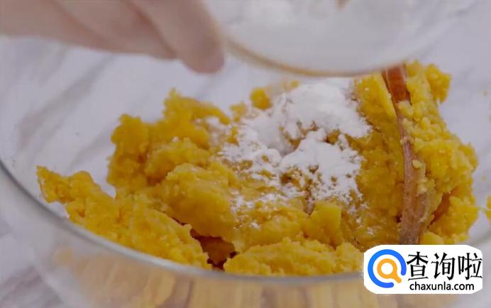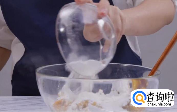 和匀后加入澄粉、糯米粉,搅拌均匀。