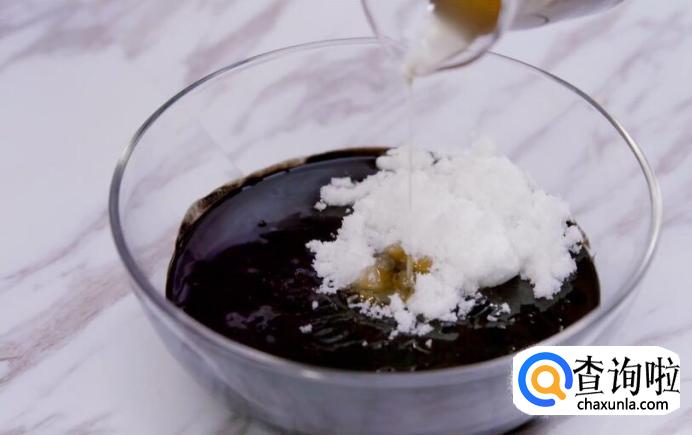 首先调馅料。将白砂糖和芝麻油倒入芝麻酱中,拌匀。糖可以多加一点,以便成型。