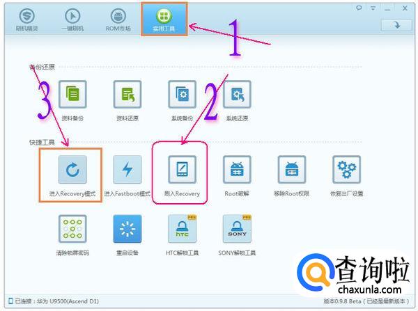 第二种方法就是借助工具,这时我们需要一台电脑,在电脑上面下载安装一个刷机软件,比如刷机精灵等,再把手机连接到电脑上面,通过刷机软件进入Recovery模式。