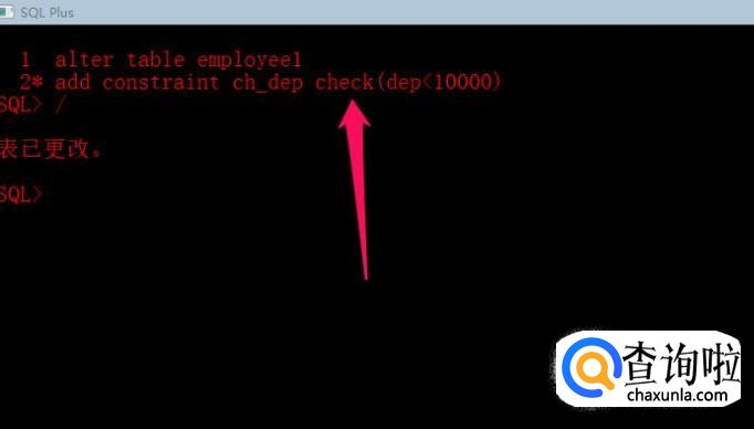 检查约束是通过检查输入到表中的数据值来维护域的完整性的,不符合条件的约束是不能被输入到表中的。例如给employee1中的dep添加检查约束,语句如下:alter table employee1 add constraint ch_dep check(dep<10000)