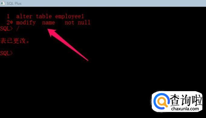 例如给name列添加非空约束,具体语句:alter table employee1 modify name not null