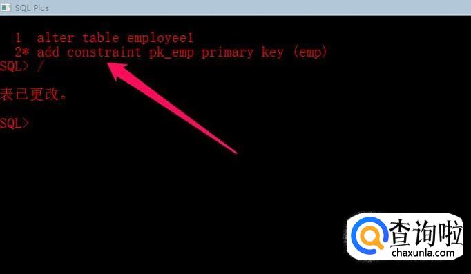 就是对某一列添加为主键,一个表中只能有一个主键约束,且主键约束不能有空值和重复的值。 alter table employee1 add constraint pk_emp primary key (emp),给employee1表中的emp列添加主键约束。