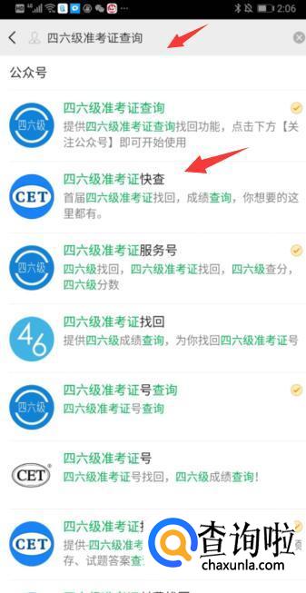 然后输入四六级准考证查询,选择“四六级准考证快查”。