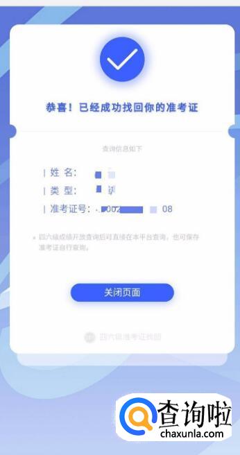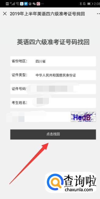 填写完整后点击确定就会查到你的准考证号,如图所示。