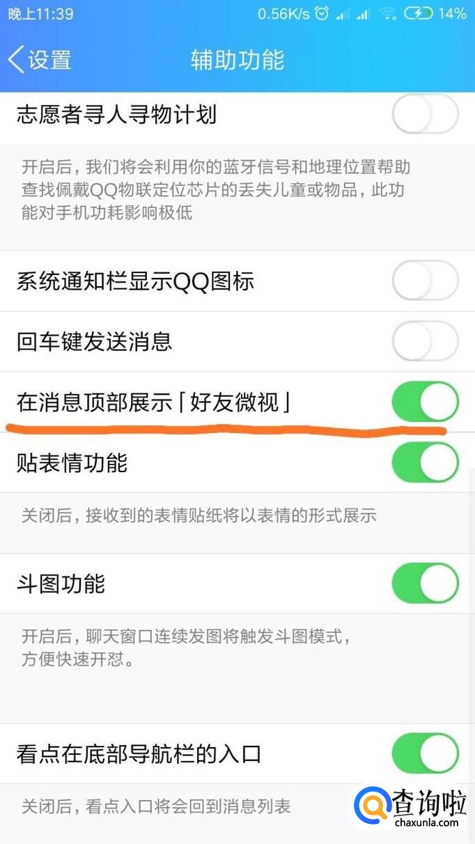 之后点击辅助功能,在里面找到下图所展示的好友微视选项,关掉它就行了