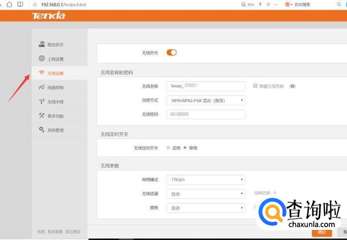 以腾达为例,进入无线路由的设置界面,找到无线设置