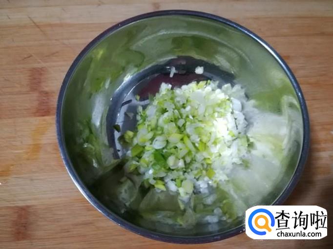 把葱、姜、蒜全部切成末放碗里。