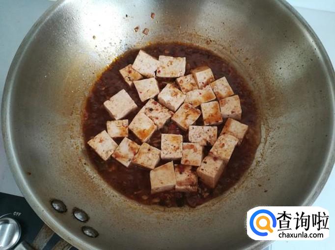 再加入半碗清水,把豆腐块入锅,炖煮至汤收干即可。