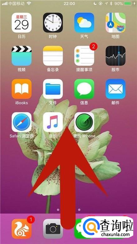 首先将我们的手机屏幕往上滑动进入副屏,如下图所示。