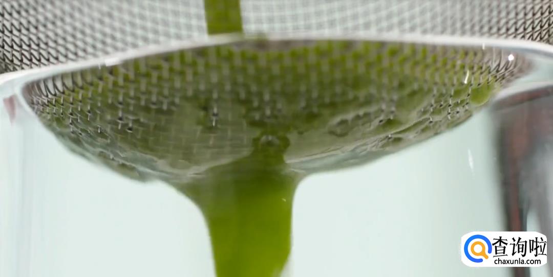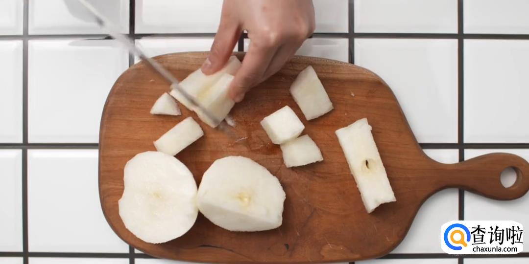 将雪梨切块,放入榨汁机,榨出梨汁后过滤。