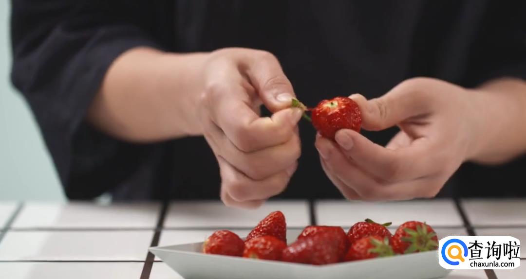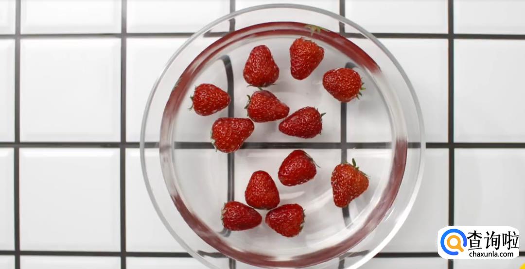 将草莓洗净,放入温盐水中浸泡10分钟,然后将叶子去掉。