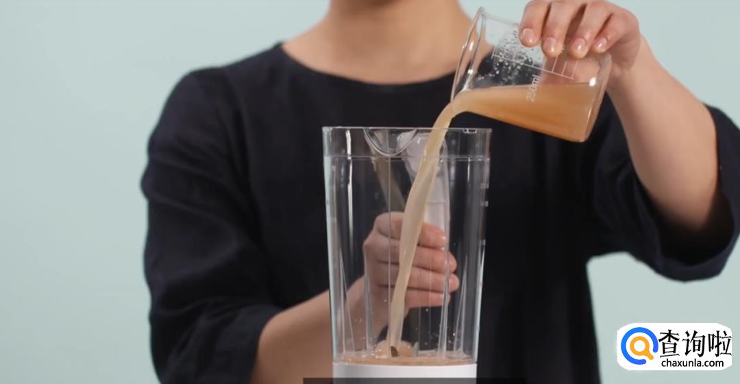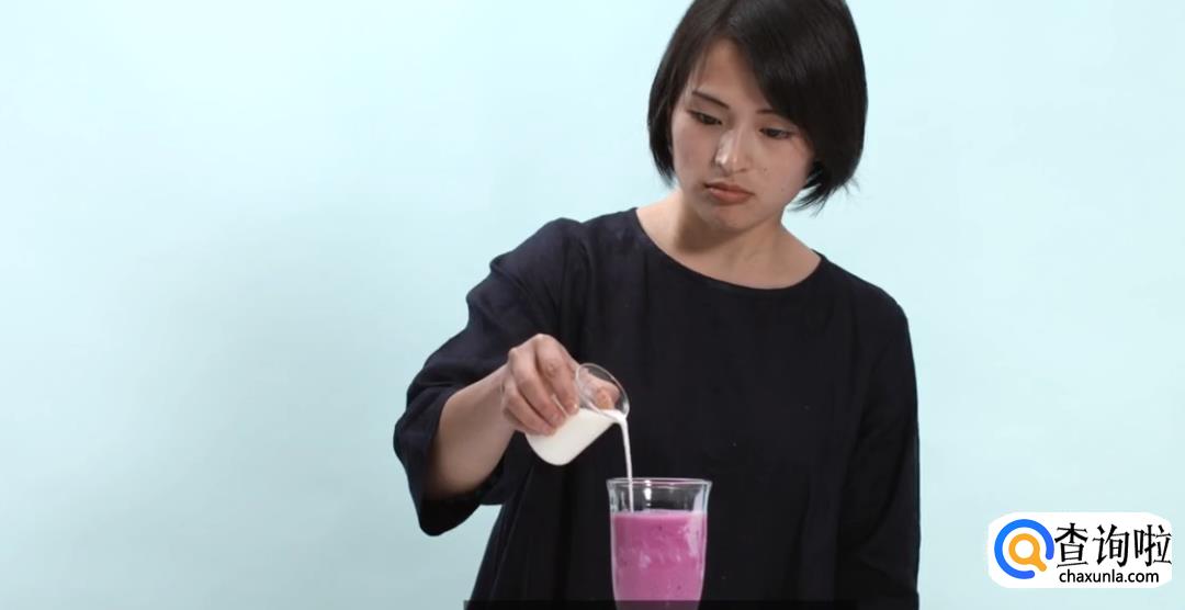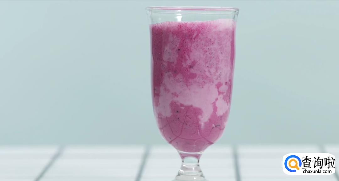 搅拌打碎后装杯,沿杯壁缓缓倒入冰牛奶,就像银河流入星夜,这样就做好了。