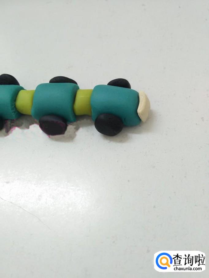 再用白色捏一个长方形,当作车头的玻璃窗。