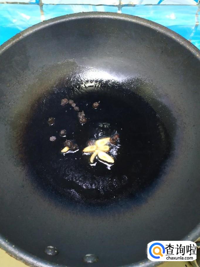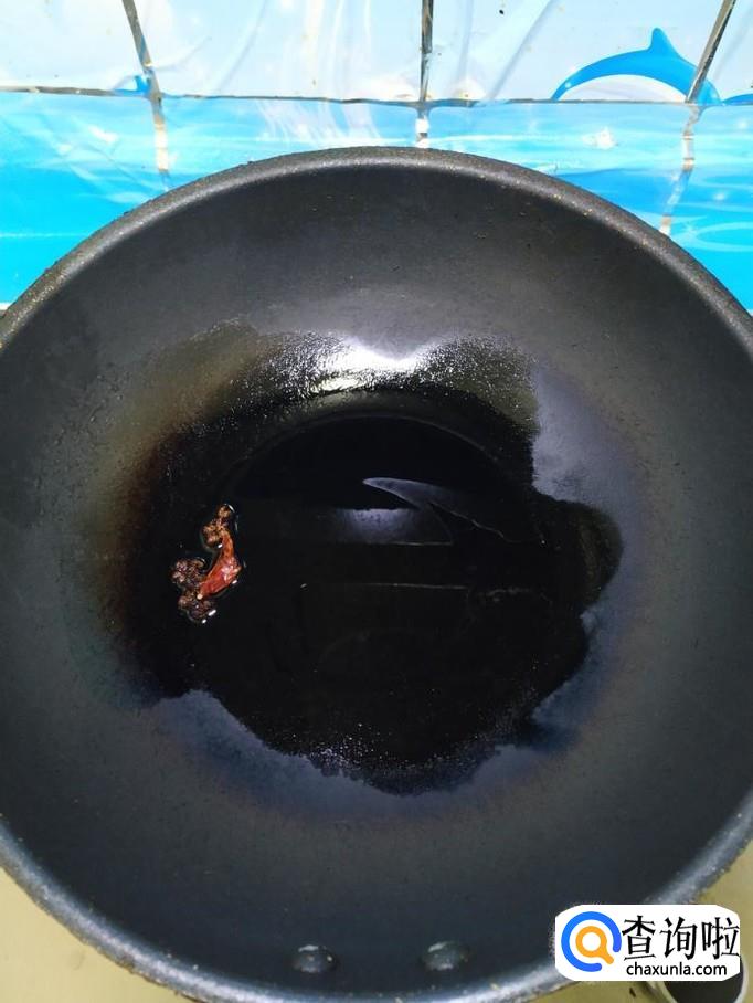 炒锅中放入适量油,油热后,放入花椒和干辣椒炒香,然后将花椒和干辣椒扔去不要。再加入适量蒜片和豆豉炒一下。