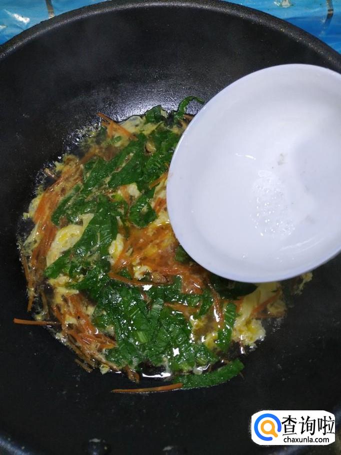 胡萝卜适量,鸡蛋适量,青菜适量,花椒适量,干辣椒适量,大蒜适量,豆豉适量,盐适量,鸡精适量,淀粉适量。