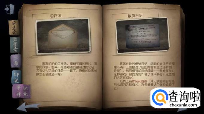 但是。我们调查壁炉后,发现只有一张信封在里面可以观看。里面记载了整个故事环节。
