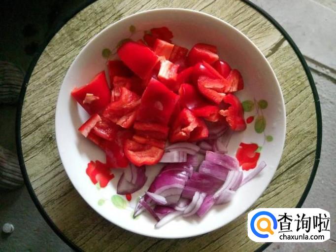 取一小块洋葱,将洋葱最外面的一层剥掉,洗净,切成小块;